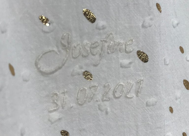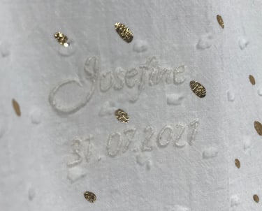 Jeg tilbyder fransk broderi eller kædesting. Alle broderie bliver lavet i hånden, som er perfekt til feks. dåbskjoler.