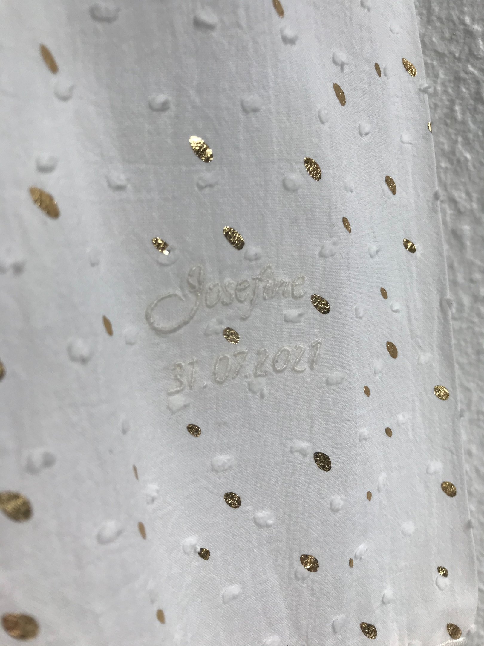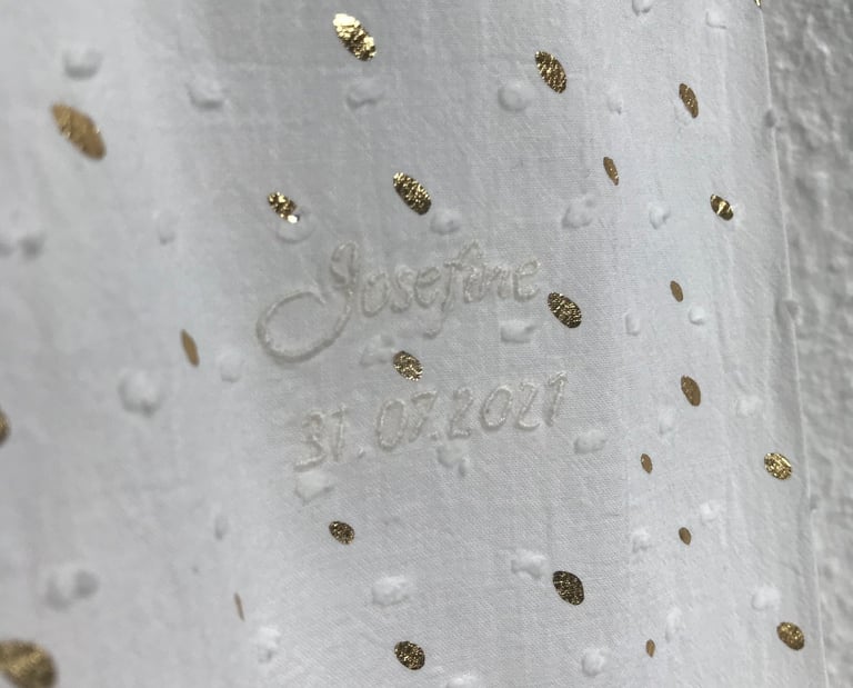 Jeg tilbyder fransk broderi eller kædesting. Alle broderie bliver lavet i hånden, som er perfekt til feks. dåbskjoler.
